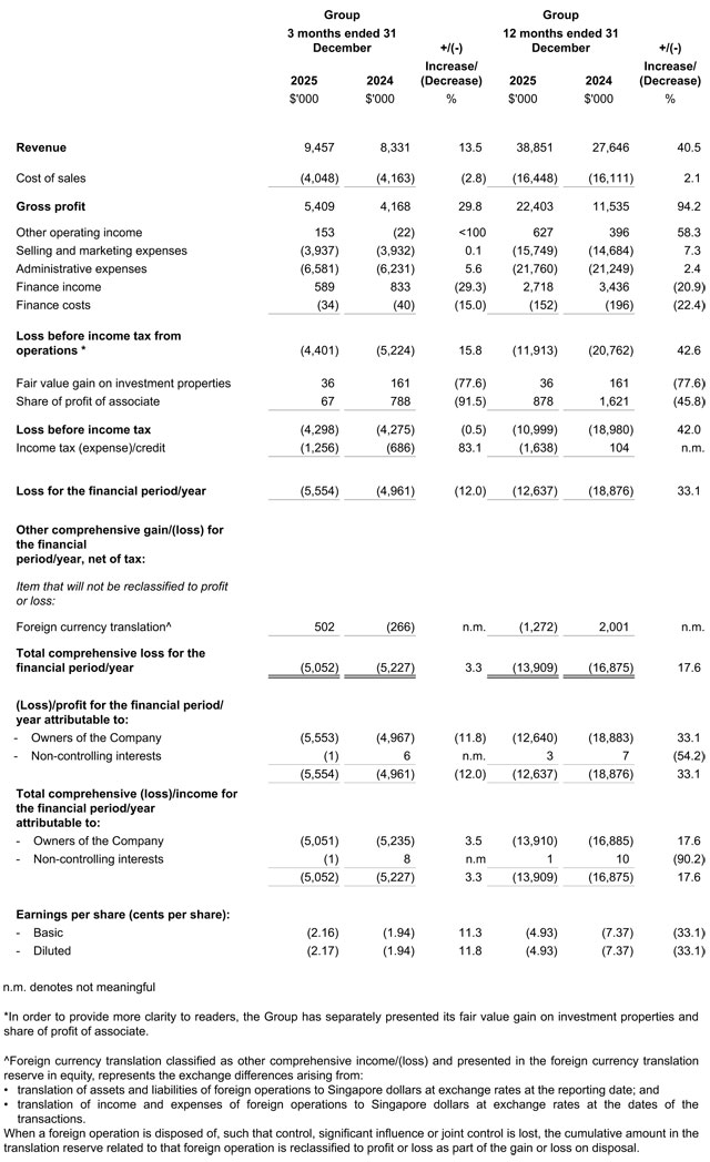 As a result of the foregoing, the Group recorded a loss before income tax from operations of S$4.4 million in Q4FY2025, compared with a loss before income tax from operations of S$5.2 million in Q4FY2024.